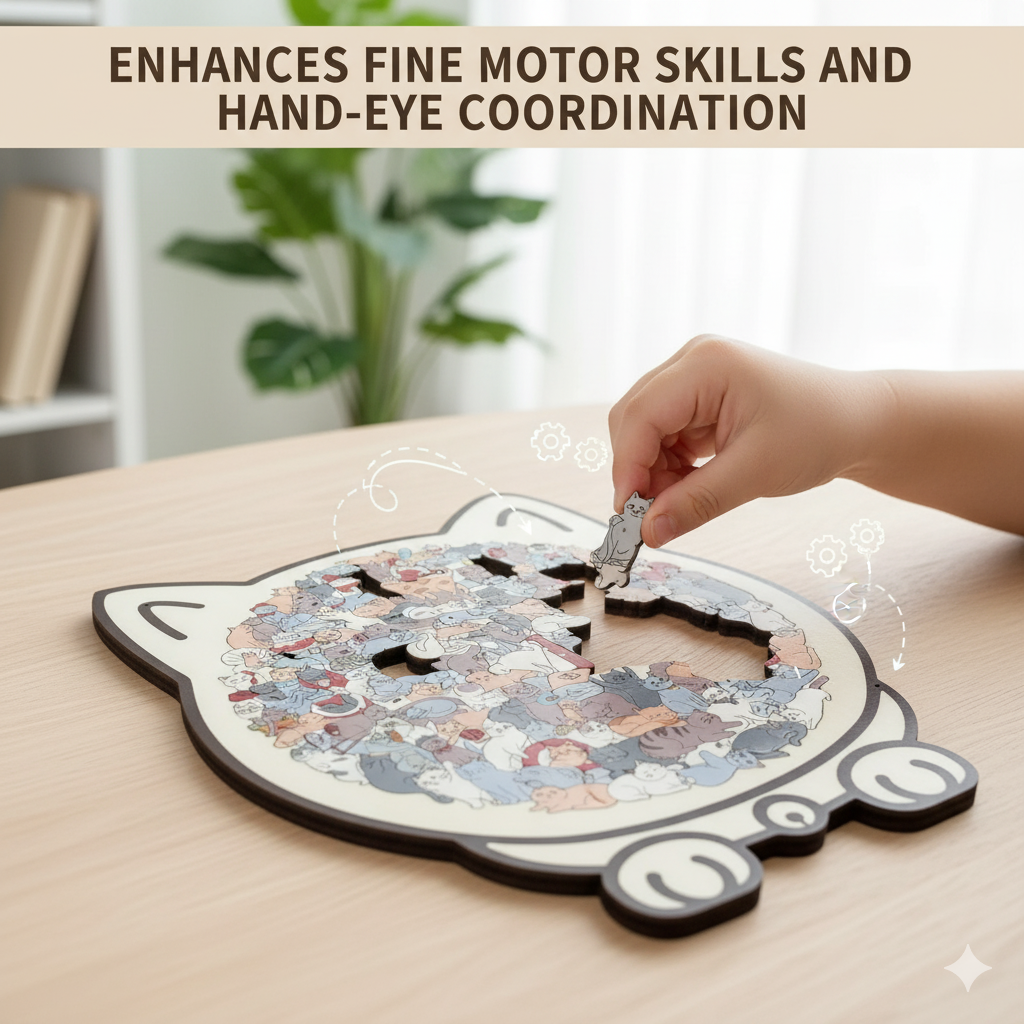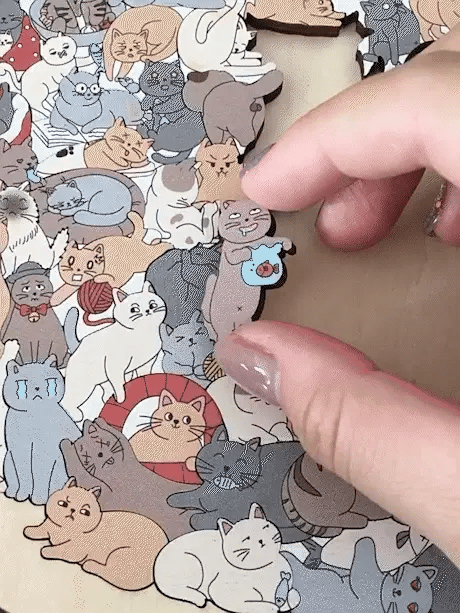 🧩 135-Piece Morandi Cat-Shaped Wooden Puzzle
